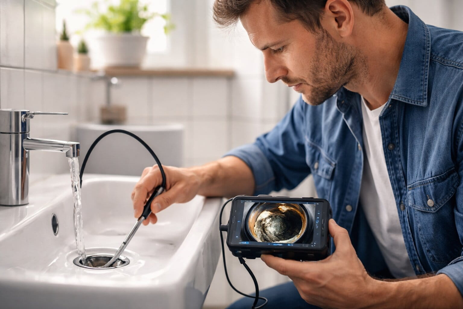 Die Entscheidung hängt von der Häufigkeit der Verstopfungen, der Rohrlänge und dem Einsatzbereich ab. Bei wiederkehrenden Verstopfungen an derselben Stelle lohnt sich der Kauf einer DIY-Endoskop-Kamera oft. Wenn du zwei bis drei Mal im Jahr den Klempner rufst, rechnet sich die Investition von 25 bis 170 Euro schnell. Du kannst selbst prüfen, ob die Ursache im Siphon sitzt oder tiefer in der Leitung – und dann gezielt mit Spirale oder Dreckfräse vorgehen. Bei einmaliger Verstopfung und unbekannter Ursache ist der Profi oft die bessere Wahl. Er bringt die passende Ausrüstung mit, diagnostiziert und reinigt in einem Durchgang. Wenn mehrere Abflüsse gleichzeitig betroffen sind oder Wasser in den Keller drückt, deutet das auf ein Problem in der Hauptleitung hin – dort ist Fachwissen gefragt. Für Kanal und Hausanschlussleitung ist immer ein Profi nötig. Die Leitungen liegen im Erdreich, sind von außen nicht zugänglich und erfordern längere Kameras mit normgerechter Dokumentation. Die Entscheidung DIY oder Profi hilft bei der Einschätzung für jeden Einzelfall.