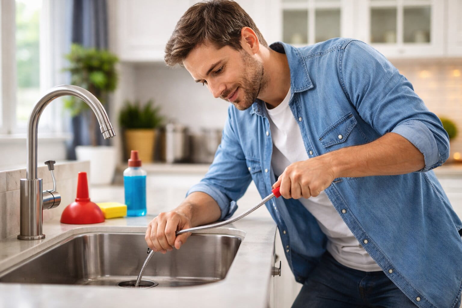Die Frage „Geht Rohrreinigung ohne Siphon demontieren?“ lässt sich klar beantworten: Ja. Vier Wege führen zum Ziel, ohne dass du den Siphon abschrauben musst. Hausmittel eignen sich für leichte Verstopfungen. Natron und Essig erzeugen eine chemische Reaktion, die Fett und Biofilm löst; heißes Wasser verflüssigt weiche Seifenreste und Fettablagerungen. Spülmittel mit heißem Wasser hilft besonders in der Küche bei Fett. Diese Methoden kosten wenig, schaden weder Rohren noch Dichtungen und brauchen keine Werkzeuge. Allerdings brauchen sie 10 bis 30 Minuten Einwirkzeit – für akute Blockaden sind sie oft zu langsam.