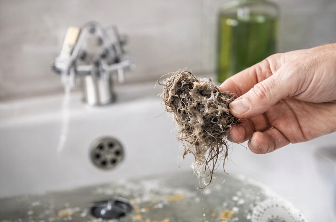 Rohrverstopfungen entstehen nicht über Nacht. Ablagerungen bauen sich schleichend auf: Haare verfilzen mit Seife, Fett kühlt ab und verfestigt sich, Kalk setzt sich in Regionen mit hartem Wasser ab. Mit der Zeit wird der Rohrquerschnitt enger, die Strömung sinkt, und irgendwann reicht der Wasserdruck nicht mehr aus, um die Ablagerungen wegzuspülen. Erst dann bemerkst du es – wenn der Abfluss langsam wird oder gluckert.